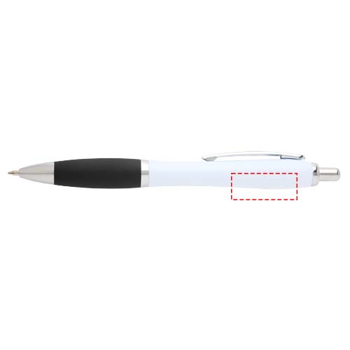 The Nash ballpoint pen features a stylish curvy design and a soft grip for comfortable writing. Made of recycled ABS plastic, this pen is hard and solid, offering a long life span.
